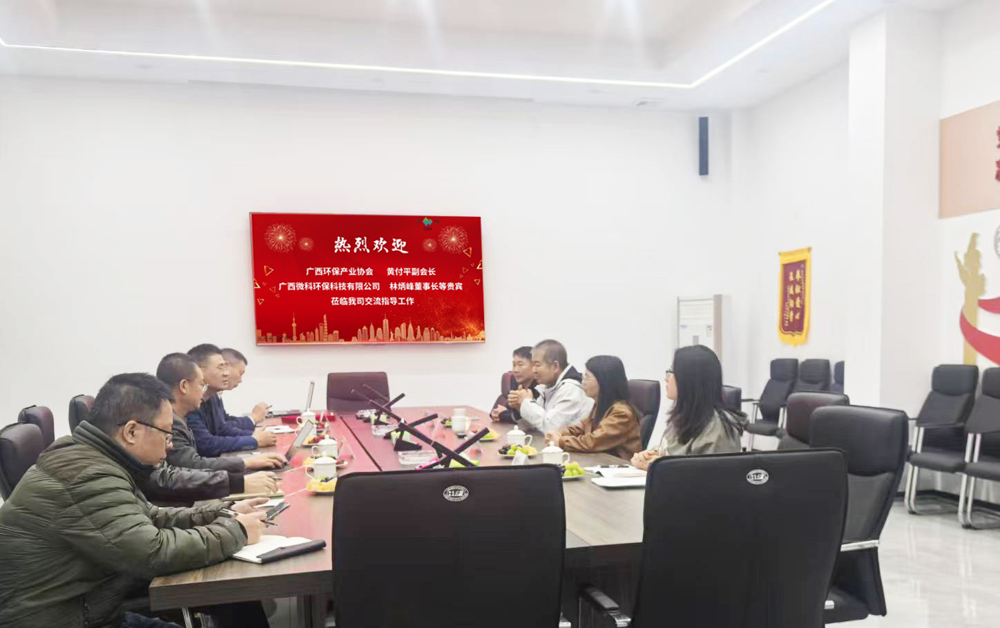 ?? ? ?2025年12月8日廣西環保產業協會黃付平副會長、廣西微科環保科技有限公司林炳峰董事長等貴賓一行,專程蒞臨浙江川寧環保科技有限公司交流指導。? ? ? ?